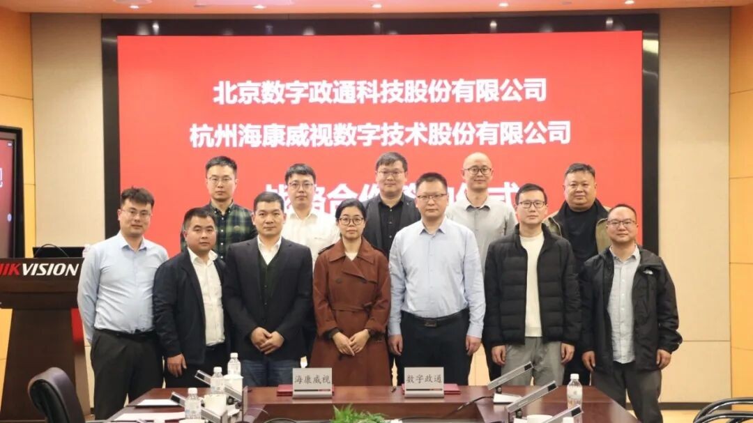 11月24日,北京數字政通科技股份有限公司(以下簡稱“數字政通”)與杭州??低晹底旨夹g股份有限公司(以下簡稱“海康威視”)簽署戰略合作協議。數字政通高級副總裁趙明明、研發中心副總經理唐念剛、研發中心副總經理李曉暉、采購部經理楊軍偉、系統集成部經理平寬,??低暩呒壐笨偛命S方紅、政府業務部總裁王英杰、城管市政行業總經理程佳績、解決方案經理宋克南、湖北業務中心副總裁袁觀顯、湖北業務中心副總裁劉洪杰、音頻與傳感產品業務部產品總監孫兵劍出席簽約儀式。